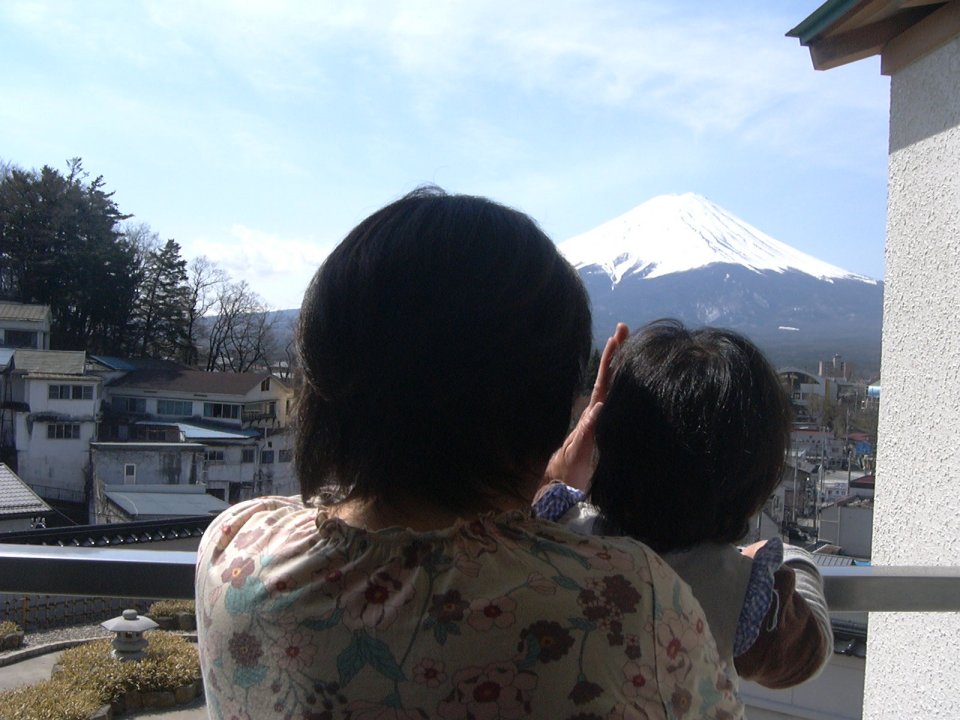 ↑部屋から富士山を見る伯母とりゅうくん。
